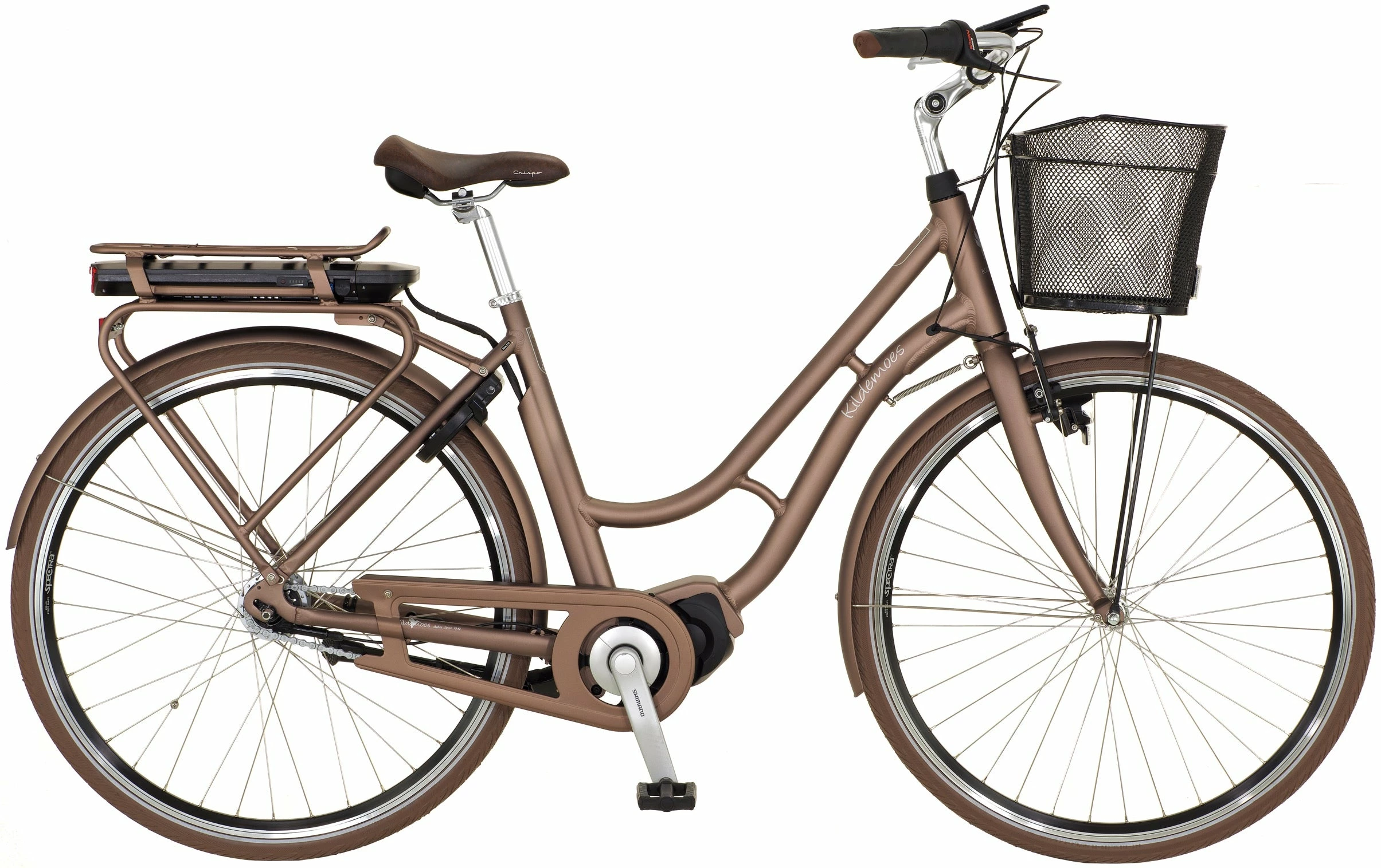 Den klassiske elcykel med lav indstigning. Med fodbremse og v-bremse er sikkerheden på plads og vedligeholdelse på et minimum. Udstyret med kurv, lygter, lås og bagagebærer. Cyklen er udstyret med Shimano Steps centermotor på 250 W for dig, som ønsker ekstra meget motorhjælp. Et 11,6 Ah batteri under bagagebæreren giver mulighed for såvel korte som lange ture. Via et LCD display styres de 5 hjælpeniveauer og walk-assist.